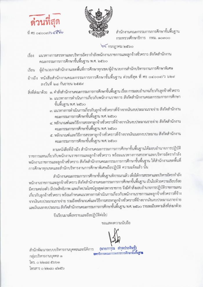 แนวทางการสรรหาและบริหารอัตรากำลังพนักงานราชการและลูกจ้างชั่วคราว สังกัด สพฐ. พ.ศ.2560