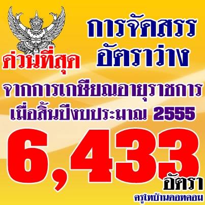 ด่วนที่สุด การจัดสรรอัตราว่างจากการเกษียณอายุราชการเมื่อสิ้นปีงบประมาณ 2555 จำนวน 6,433 อัตรา