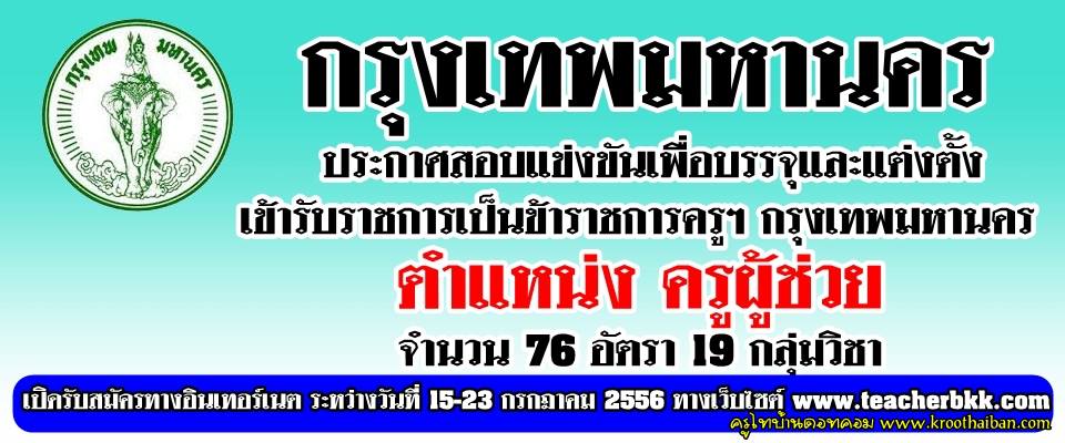 กรุงเทพมหานคร เปิดสอบครูผู้ช่วย จำนวน 76 อัตรา 19 กลุ่มวิชา