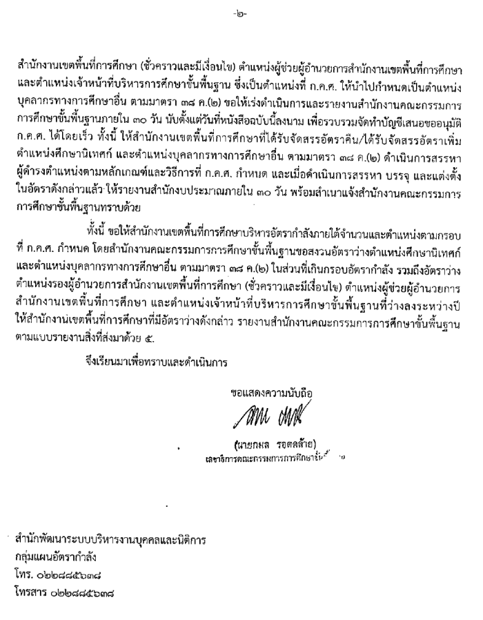 การจัดสรรอัตราข้าราชการครูและบุคลากรทางการศึกษาใน สพท.