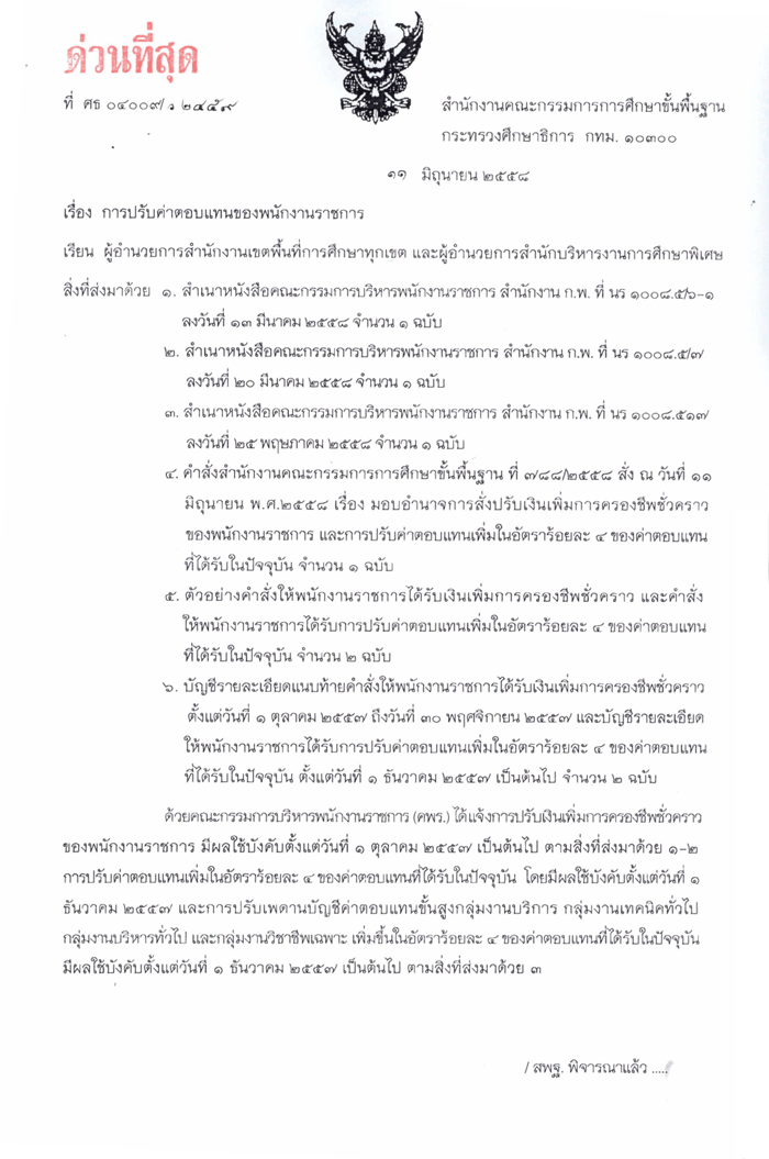 ด่วนที่สุด ที่ ศธ 04009/ว2459 การปรับค่าตอบแทนของพนักงานราชการ