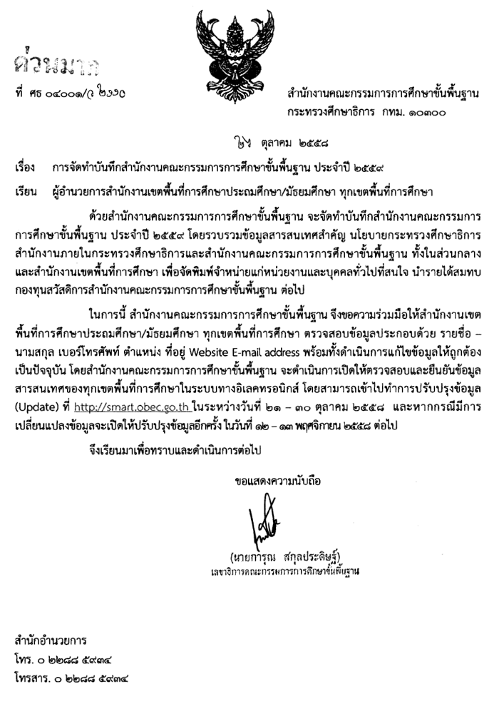 หนังสือ ด่วนมาก ที่ ศธ 04001/ว2110 ลว 26 ตุลาคม 2558
