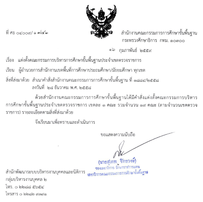 สำนักงานคณะกรรมการการศึกษาขั้นพื้นฐาน มีคำสั่งแต่งตั้งคณะกรรมการบริหารการศึกษาขั้นพื้นฐานประจำเขตตรวจราชการ รายละเอียด ดังนี้