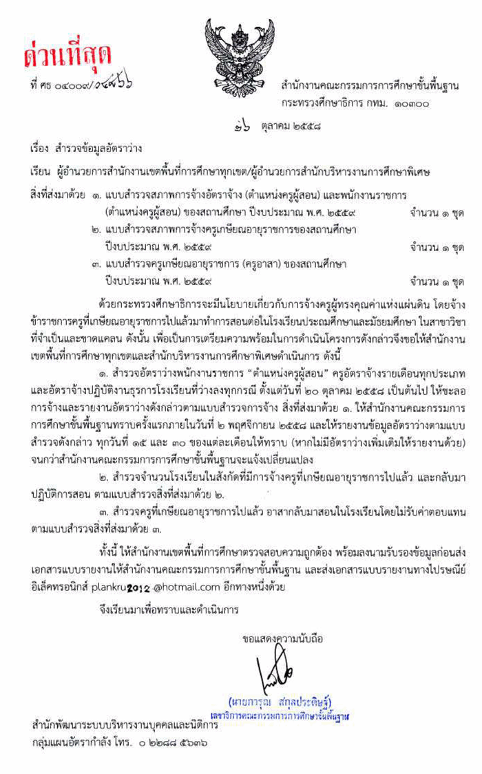 update(แก้ไขแบบฟอร์ม) ด่วนที่สุด ที่ ศธ 04009/ว4866 ลว 26 ต.ค. 58 เรื่อง สำรวจข้อมูลอัตราว่าง |