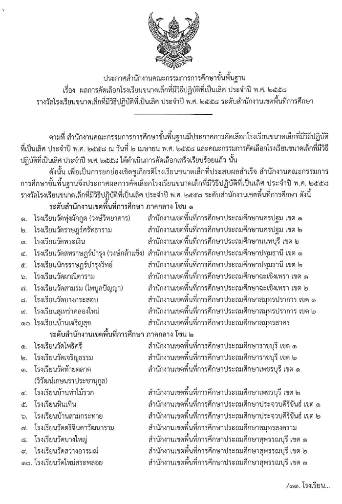 ประกาศ! ผลการคัดเลือกโรงเรียนขนาดเล็กที่มีวิธีปฏิบัติที่เป็นเลิศ ประจำปี พ.ศ. 2558