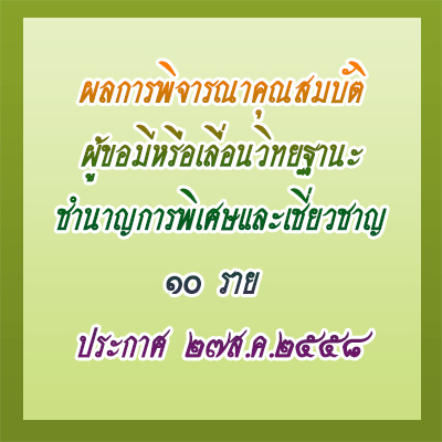 ผลการพิจารณาคุณสมบัติผู้ขอมีหรือเลื่อนวิทยฐานะชำนาญการพิเศษและเชี่ยวชาญ 10 ราย ประกาศ 27ส.ค.2558
