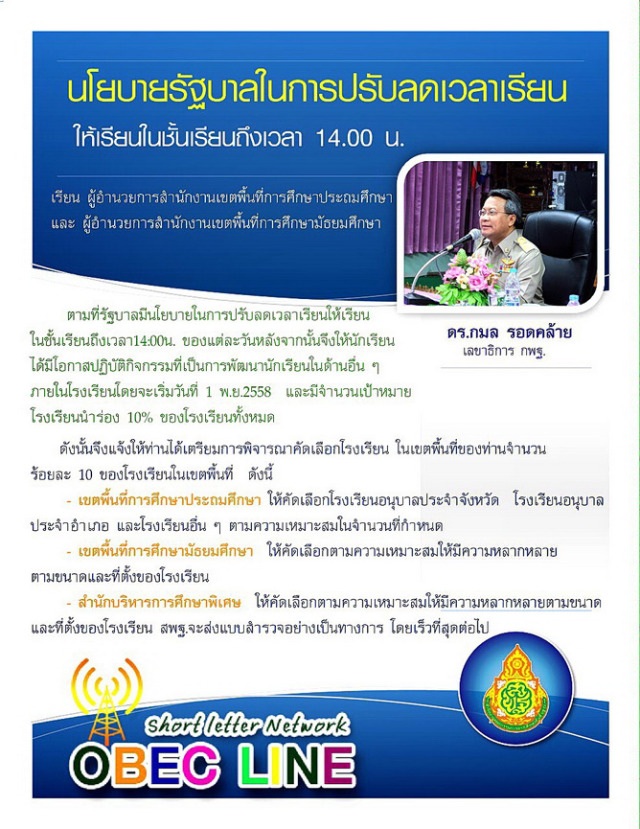 ลิงก์ รับฟัง รมว.ศธ.มอบนโยบายการศึกษา 27 สิงหาคม 2558 เวลา 13.30 น.เป็นต้นไป