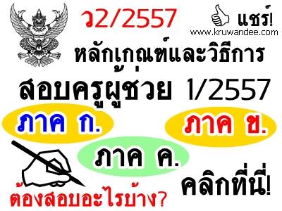 ว2/2557 หลักเกณฑ์และวิธีการสอบแข่งขันเพื่อบรรจุฯ ตำแหน่งครูผู้ช่วย » โพสต์เมื่อ วันที่ 26 กุมภาพันธ์