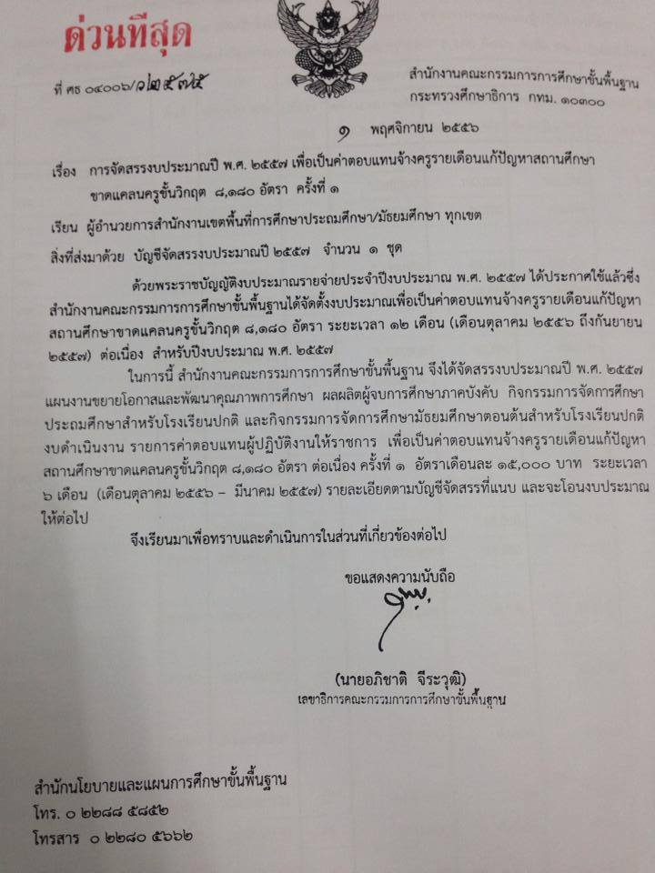 เงินเดือนใหม่ 15,000 บาทสัญญาจ้างครูขาดแคลนขั้นวิกฤต