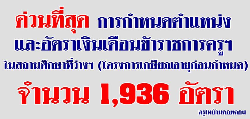 ด่วนที่สุด การกำหนดตำแหน่งและอัตราเงินเดือนข้าราชการครูและบุคลากรทางการศึกษาในสถานศึกษาที่ว่างฯ จำนว