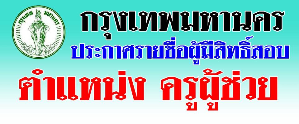 กรุงเทพมหานคร ประกาศรายชื่อผู้มีสิทธิ์สอบครูผู้ช่วย 2556 สามารถดูรายละเอียดได้ที่นี่
